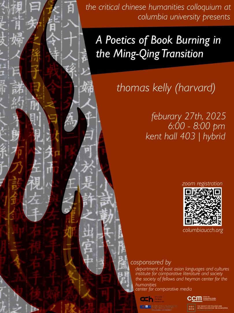 My talk reexamines this phenomenon by looking at the most notorious case of self-inflicted book burning in the Qing—Zhou Lianggong’s (1612–1672) decision to set fire to the wooden printing blocks for his collected writings in 1671. Zhou’s bibliocaust synthesizes three broader trends: 1) a hardline Neo-Confucian view that print corrupts learning; 2) the valorization of erasure in the transmission of women’s poetry; and 3) the idea that book burning had become a means of self-preservation among Ming loyalists and twice-serving ministers. By reconsidering the complex interplay between these trends, I show how the reevaluation of book burning in seventeenth century scholarly circles illuminates a neglected yet distinctive aspect of late imperial textual culture: namely, that intellectuals responded to a proliferation of books from the sixteenth century onward by prioritizing subtraction over addition. For these thinkers, editing was not simply a matter of preservation and dissemination, but also of curation through destruction.